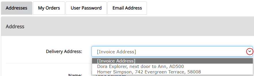 You may now proceed to complete your order with the new Delivery address. Because the new address is now stored, you can select between them from the drop-down list above.